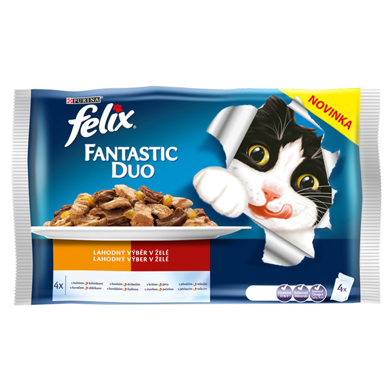 Felix Fantastic Duo Výběr pro kočky 4x100g79,90 Kč/ ks71,34 Kč bez DPH
