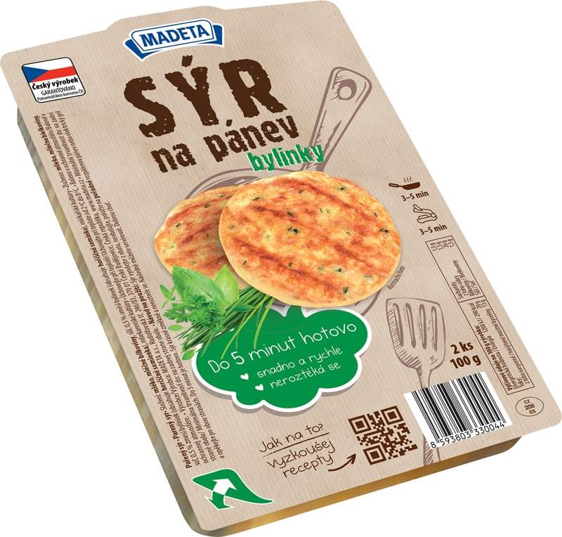 Madeta Sýr na pánev bylinky 100g39,90 Kč/ ks35,63 Kč bez DPH