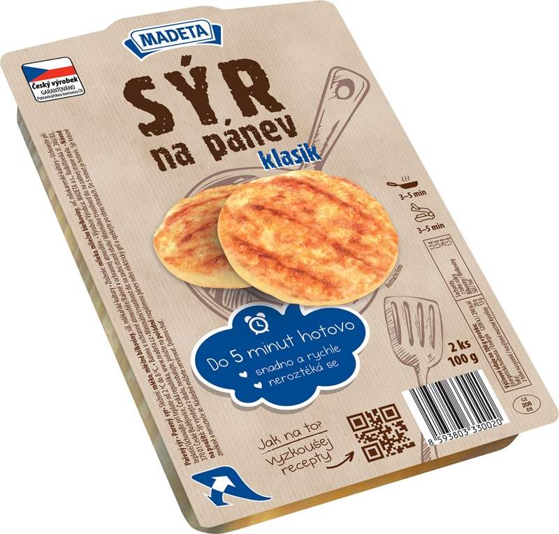 Madeta Sýr na pánev klasik 100g39,90 Kč/ ks35,63 Kč bez DPH