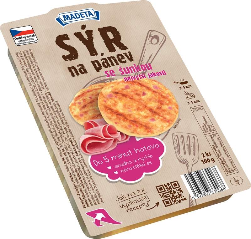 Madeta Sýr na pánev šunka 100g39,90 Kč/ ks35,63 Kč bez DPH