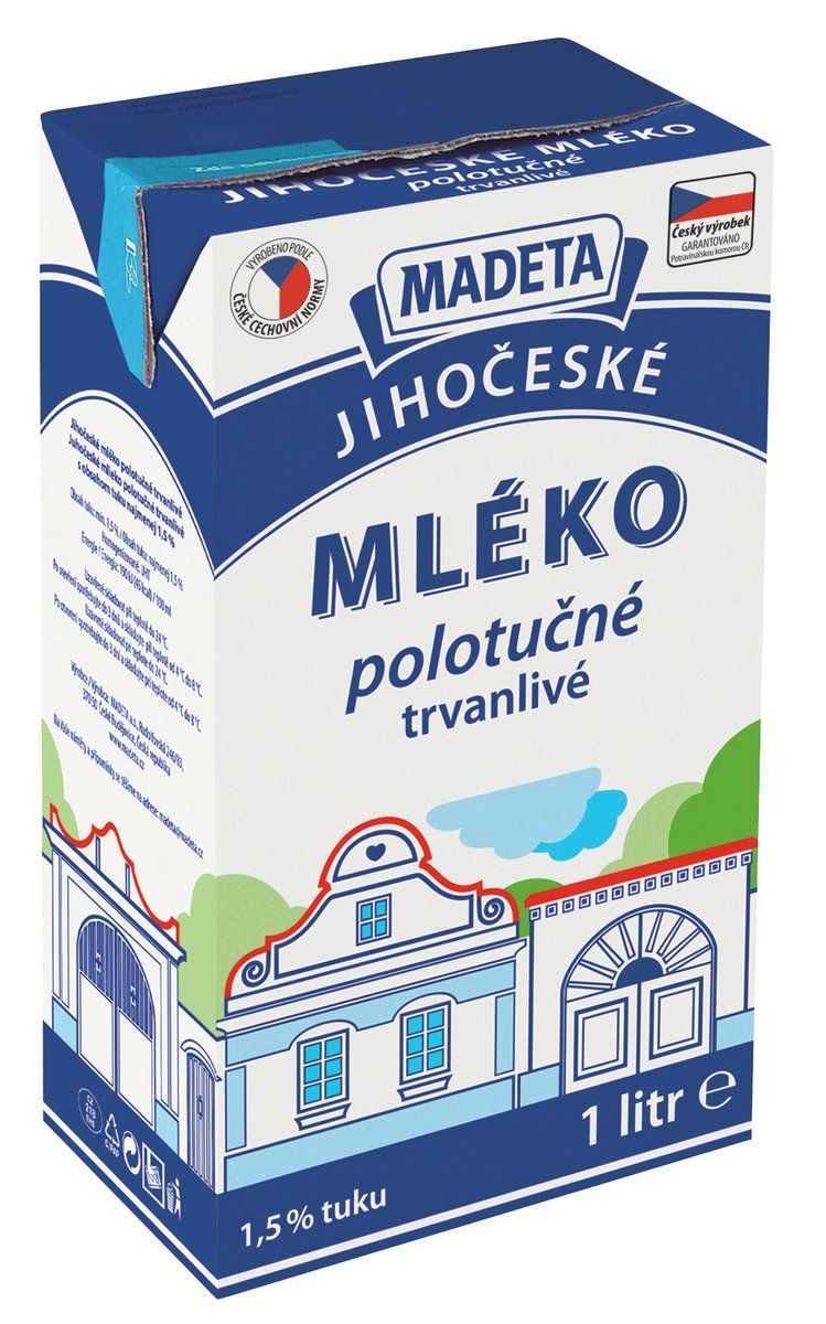 - Madeta mléko jihočeské trvanlivé polotučné 1,5% 1L