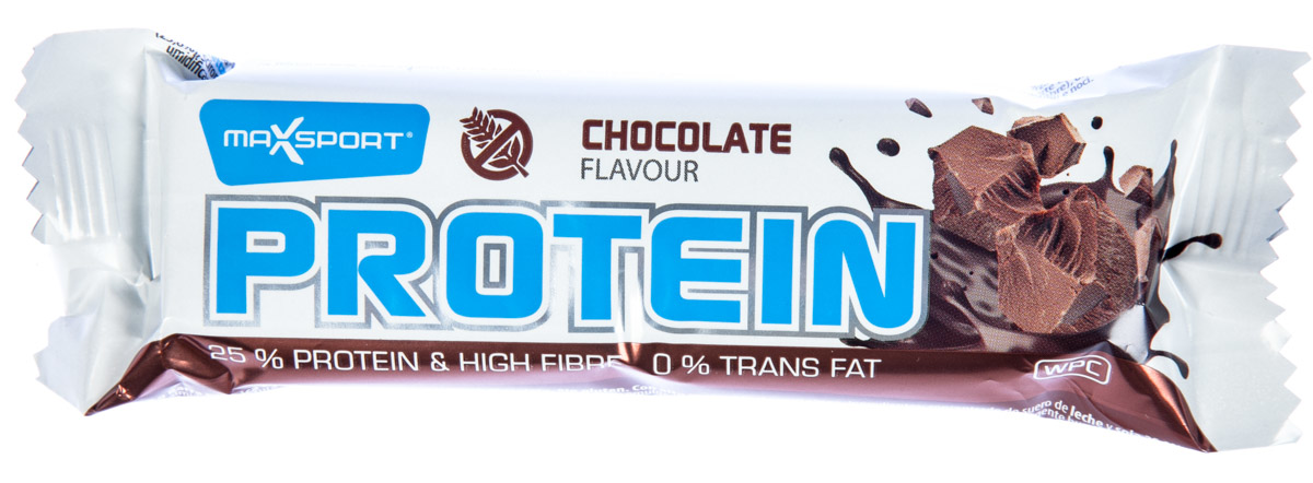 - Proteínová tyčinka v tmavej poleve s čokoládovou arómou. Bezgluténový výrobok. S vysokým obsahom bielkovín. Zloženie: srvátkový bielkovinový koncentrát a sójový bielkovinový izolát 25,8 %, škrobový sirup, kakaová poleva 18 % ( cukor, palmový tuk, kakaový prášok 10 %, emulgátor: sójový lecitín, aróma), oligofruktóza (vláknina), repkový olej, hrozienka, zvlhčujúca látka: glycerol, sójové vločky, kakaový prášok 2 %, extrudát ( ryža, cukor, mrkva), emulgátor: sójový lecitín, aróma. Môže obsahovať arašidy a orechy.