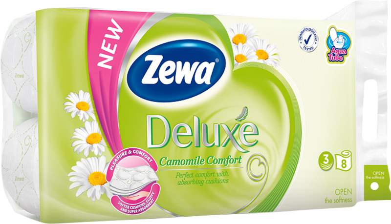 Zewa Toaletní papír deluxe cashmere camomile 3-vrstvý 8ks129,90 Kč/ ks107,36 Kč bez DPH